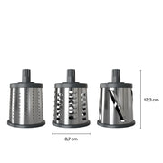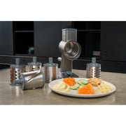 Die Trommelreibe gehört zu den bekanntesten Produkten von Zyliss. Qualität, die unsere Kunden seit Jahrzehnten schätzen. Das stabile Aluminiumguss-Gehäuse, der sichere Stand, die Schärfe der Edelstahltrommeln und nicht zuletzt die Freude beim Kochen. Jede Trommelreibe wird mit einer feinen und einer groben Reibetrommel sowie mit einer Scheibentrommel geliefert. Zusätzlich sind eine Püree-Trommel, eine Bircher Müsli Trommel sowie eine Julienne-Trommel erhältlich. Für mehr Funktionalität und Sicherheit erhalten Sie zu den Trommeln eine spezielle Aufbewahrungsröhre.
