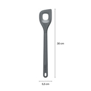 Der abgewinkelte Rührlöffel von Zyliss eignet sich dank seines hitzebeständigen Nylonkopfes besonders zum Kochen und Zubereiten in allen herkömmlichen Kochgeschirren. Der Rührlöffel lässt sich einfach in der Spülmaschine reinigen und bietet Dank der praktischen Aufhänge Öse platzsparendes Aufbewahren. Der Griff besteht aus Weizenstroh-Kunststoff, der den Anteil von neuem Kunststoff um 50 % ersetzt und ist somit besonders nachhaltig. Durch die feine Oberflächenstruktur und Profillinien sorgt der Griff für hervorragende Haptik. Der zunehmende Durchmesser zum Ende des Griffs sorgt außerdem für mehr Komfort in der Handhabung.