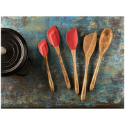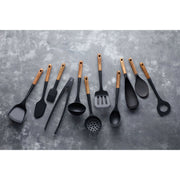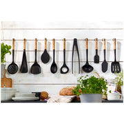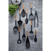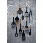 Dieser Servierwender ist ein nützlicher Helfer für deine Küche. Er besteht aus BPA-freiem, schwarzem Silikon und zerkratzt dadurch keine Oberflächen. Ideal zur Verwendung mit unserem Kochgeschirr aus Keramik und Gusseisen. Der Akazienholzgriff ist ergonomisch geformt und begeistert mit außergewöhnlichem Aussehen und angenehmer Haptik. Die Form des Spatels mit seinen drei Schlitzen macht ihn zu einem vielseitigen Werkzeug, da er das Anhaften von Speisen und verhindert und überschüssiges Öl abtropfen lässt.