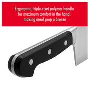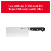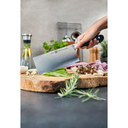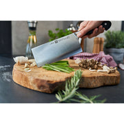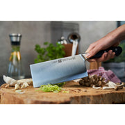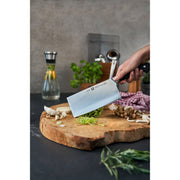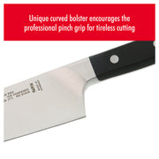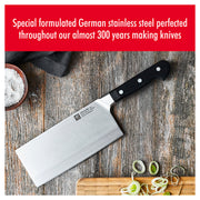 Das wichtigste Messer in der Küche ist das Kochmesser. Dieses Allzweckwerkzeug schneidet Fleisch, Fisch oder Gemüse. Das Modell aus der Serie ZWILLING Pro überzeugt durch seine hochwertige Qualität. Das Kochmesser hat eine breite, kräftige und scharfe Klinge mit 18 cm Länge, die alle Schneidarbeiten in optimaler Balance ausführt. Es liegt mit seinem ergonomischen Kunststoffgriff perfekt in der Hand und überzeugt mit seinem Drei-Nieten-Design auch optisch.