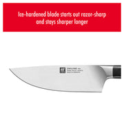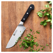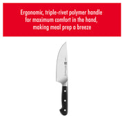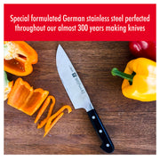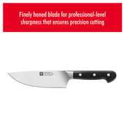 Mit ZWILLING Pro Messern erhältst du die passende Kombination aus der innovativen Technik eines geschwungenen Kropfs, traditioneller Optik und höchster Präzision. Die nächste Generation des Messer-Klassikers mit dem Drei-Nieten-Griff ist der neue Standard für kreative Köch*innen – wie gemacht für die alltägliche Küche. Du suchst ein Allzweck-Messer für deine Küche Dann ist das Kochmesser wie für Sie gemacht: Es schneidet Fleisch und Fisch ebenso mühelos wie Gemüse. Das ZWILLING Pro Kochmesser mit einer 16 cm langen Klinge vereint Handwerkskunst mit zeitlosem Design. Dank dem ergonomisch geformten Kunststoffgriff liegt das Kochmesser stets angenehm in der Hand, auch bei längerem Schneiden. Darüber hinaus ist das Messer auch qualitativ ein echtes Highlight. Es besteht aus Stahl der Sorte Sonderschmelze und überzeugt mit seiner fugenlosen Verarbeitung. So ist das ZWILLING Messer sehr robust und widerstandsfähig. Auch die Schärfe begeistert, denn dank der eisgehärteten FRIODUR Klinge liefert das Kochmesser sehr gute Schneidergebnisse.