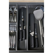 Hochwertige Messer sollten zur schonenden Aufbewahrung nur in einem Messerblock oder mit einem passenden Klingenschutz in der Schublade gelagert werden. Die Messerstulpe von ZWILLING eignet sich für Messer mit einer bis zu 20 cm langen Klinge und ist 3,2 cm hoch. Auf der Innenseite der aus Kunststoff gefertigten Hülle befindet sich weiches Vlies zum Schutz der Messerklinge. So können Messer sicher verpackt und jederzeit griffbereit in der Küchenschublade auf ihren Einsatz warten.