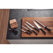 Mit ZWILLING Pro Messern erhältst du die passende Kombination aus der innovativen Technik eines geschwungenen Kropfs, traditioneller Optik und höchster Präzision. Die Evolution des Messer-Klassikers mit den drei Nieten ist der neue Standard für kreative Köch*innen – wie gemacht für die alltägliche Küche. Das Fleischmesser ZWILLING Professional S lässt Sie feine, präzise Scheiben von verschiedensten Fleisch- und Fischstücken abschneiden. Dieses 20 cm lange Professional S Fleischmesser vereint Handwerkskunst mit formvollendetem Design. Dank der optimalen Ergonomie des Kunststoffgriffs lässt sich das Fleischmesser angenehm führen, auch bei längerer Benutzung. Aber das Messer begeistert auch durch seine Qualität. Es besteht aus Stahl der Sorte Sonderschmelze und überzeugt mit seiner fugenlosen Verarbeitung. Zusätzlich ist das ZWILLING Messer äußerst robust und widerstandsfähig. Auch die Schärfe überzeugt, denn dank der eisgehärteten FRIODUR Klinge liefert das Fleischmesser sehr gute Schneidergebnisse.
