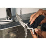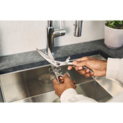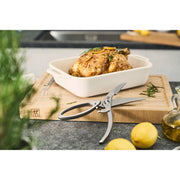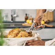 Mit der TWIN Select Geflügelschere wird die Zubereitung und das Portionieren von Geflügel aller Art ganz einfach. Das durchdachte Design der Geflügelschere beginnt beim ergonomischen Griff, der gut und sicher in der Hand liegt. Dank der idealen Hebelwirkung und einer dementsprechend guten Kraftübertragung brauchen Sie nicht unnötig viel Kraft aufzuwenden, um Fleisch, Sehnen und selbst Knochen zu durchtrennen. Die gezahnte Schere ist aus rostfreiem Spezialstahl geschmiedet und besonders scharf. Zusätzlich verhindert der vorhandene Sicherheitsbügel ein versehentliches Aufklappen und mindert das Verletzungsrisiko. Nach dem Kochen können Sie die Schere durch den Aushebenagel zum leichten Reinigen auseinandernehmen.