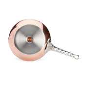 Die Bratpfanne Prima Matera besteht aus einer Kupferaußenschicht und einer Edelstahlinnenschicht. Diese Materialkombination sorgt für eine optimale Wärmeverteilung und eine schnelle Reaktionsfähigkeit auf Temperaturänderungen. Das Kupfer ermöglicht eine präzise Steuerung der Hitze, während der Edelstahl für Langlebigkeit und einfache Pflege sorgt.