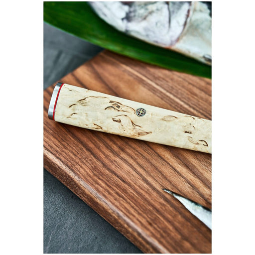 Die Messer aus der Serie BIRCHWOOD 5000MCD sehen einfach faszinierend aus: Eine scharfe Klinge mit japanischem Honbazuke-Abzug in einzigartigem ...