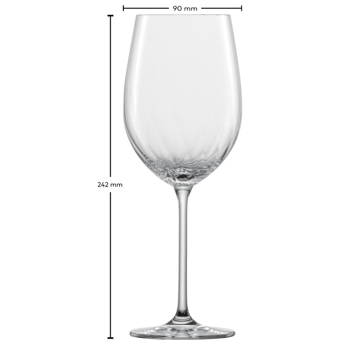 Der hohe Kamin und die große Öffnung des Bordeauxglases der Serie Prizma von Zwiesel Glas sorgen dafür, dass sich jeder Bordeaux optimal entfalten kann. Die Optik im Kelch unterstützt die Intensität der verschiedenen Bordeauxaromen.