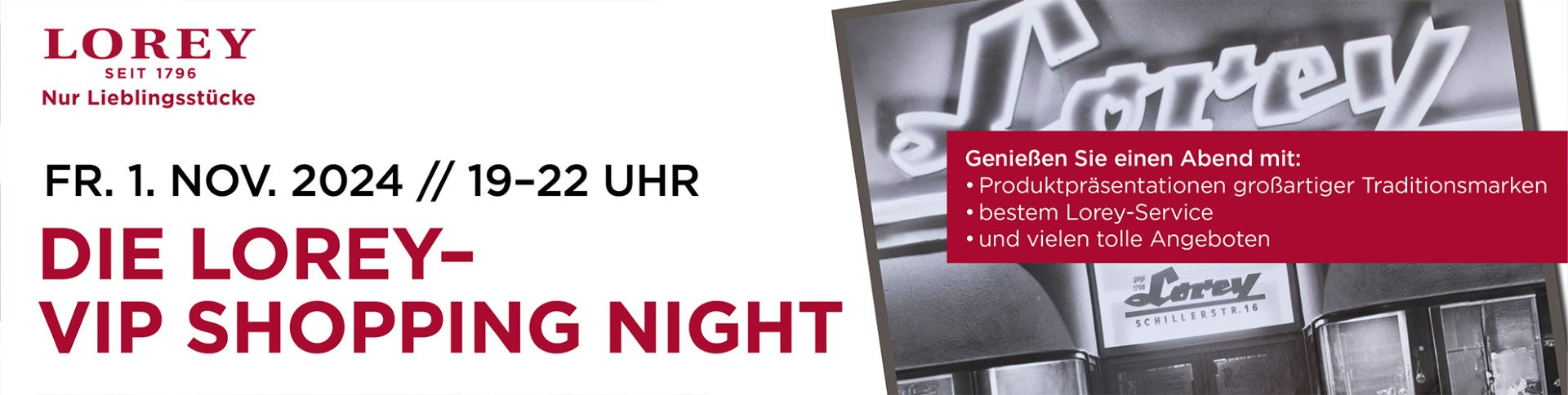 wir, die Firma Lorey, laden Sie herzlich zu unserem VIP-Abend am Freitag, den 01. November 2024 ein! Der besondere Abend findet nach Ladenschluss von 19:00 bis 22:00 Uhr statt. Freuen Sie sich auf eine entspannte Atmosphäre, exklusive Angebote und zahlreiche Highlights. Außerdem erhalten Sie an diesem Abend 10 % auf das gesamte Sortiment.