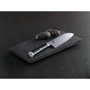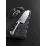 Die MIYABI Serie 5000FCD erschafft eine Brücke zwischen deutscher Ingenieurskunst und traditioneller japanischer Schmiedekunst. Die Damast-Klinge mit 48-lagigem Stahl, der besonders scharfe Honbazuke-Abzug und ein Griff aus Pakkaholz sind dafür die besten Charakteristika. Das Shotoh ist ein japanischer Klingentyp, der traditionell eingesetzt wird, um Obst und Gemüse zu schneiden. Dieses 13 cm lange 5000 FC-D Shotoh ist die ideale Symbiose aus hochwertigem Material mit formschönem, innovativem Design. Dank dem ergonomisch geformten Pakkaholzgriff lässt sich das Shotoh angenehm führen, auch wenn Sie längerdauernde Schneidarbeiten durchführen. Auch qualitativ ist das Messer eine ausgezeichnete Wahl. Es besteht aus Stahl der Sorte Sonderschmelze und überzeugt mit seiner fugenlosen Verarbeitung. So ist das Messer sehr robust und widerstandsfähig. Auch die Schärfe ist von Dauer, denn die FRIODUR Klinge wurde eisgehärtet, weshalb das Shotoh auch exzellente Schneideergebnisse liefert.