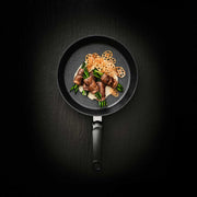 Mit der Adamant® Pfanne gehören Kratzer endlich der Vergangenheit an. Das Geheimnis? Eine extrem robuste Beschichtung. Die darin enthaltenen Siliziumkarbid-Partikel bilden eine neuartige, kratzfeste Oberfläche, die sogar die Nutzung von Küchenhelfern aus Metall erlaubt! Gleichzeitig verfügt die Pfanne über einen sehr guten Antihaft-Effekt und eine hervorragende Wärmeleitfähigkeit. Dadurch kann sowohl schonend als auch kross gebraten werden. Das macht die Adamant® zum absoluten Allrounder auf dem Herd.