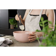 Der Backlöffel von Zyliss eignet sich dank seines Silikonkopfes besonders zum Rühren in antihaftbeschichteten Töpfen und Pfannen. Mit der flexiblen Vorderkante erreichen Sie auch den äußersten Rand im Kochgeschirr. Der Backlöffel lässt sich einfach in der Spülmaschine reinigen und bietet Dank der praktischen Aufhänge Öse platzsparendes Aufbewahren. Der Griff besteht aus Weizenstroh-Kunststoff, der den Anteil von neuem Kunststoff um 50 % ersetzt und ist somit besonders nachhaltig. Durch die feine Oberflächenstruktur und Profillinien sorgt der Griff für hervorragende Haptik. Der zunehmende Durchmesser zum Ende des Griffs sorgt außerdem für mehr Komfort in der Handhabung.