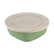Die kompakte Frischhaltebox hat einen quadratischen Boden, der ihr besondere Standfestigkeit verleiht. Nach oben hin läuft sie kreisrund aus und lässt sich so besonders einfach verschließen. Der Deckel schließt dicht, so bleibt alles frisch und knackig und kann problemlos transportiert werden.