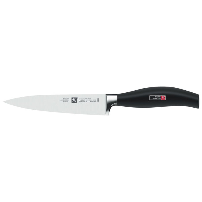 Dieses 3-tlg Messerset aus der Serie FIVE STAR von ZWILLING ist die Basis für effizientes Arbeiten in der Küche. Verschiedene Lebensmittel kannst du damit einfach und präzise zubereiten. Innovatives Design und Premium-Qualität bietet ZWILLING mit dem Messerset aus der Serie FIVE STAR. Moderne Messertechnologie und hochwertige Verarbeitung kommen hier zusammen. Die eisgehärteten FRIODUR Klingen aus Sonderschmelze verleihen den Messern Härte und gleichzeitig Flexibilität sowie Langlebigkeit. Der fugenlos verarbeitete Griff aus Kunststoff ist ergonomisch geformt, sodass das Messer besonders gut in der Hand liegt. Die in Deutschland hergestellten Messer überzeugen durch ihre sorgfältige und hochwertige Verarbeitung.