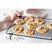 Kühlgitter gehören zu jeder guten Küchenausstattung und sind ein nützlicher Helfer für das Auskühlen von Kuchen und Tortenböden, aber auch beim Dekorieren. Überschüssige Glasur oder Guss kann auf die Arbeitsplatte abtropfen und bleibt nicht am Gebäck hängen. Die Antihaftbeschichtung erleichtert zudem nach dem Gebrauch die Reinigung. Das Tortengitter ist aus antihaftbeschichtetem Metall gefertigt und nicht für die Spülmaschine geeignet. Wir empfehlen das Gitter per Hand mit einem weichen Tuch und mildem Spülmittel zu reinigen. PFAS frei. Viele weitere nützliche Utensilien und Backzubehör finden Sie bei den "Backformen & Backrahmen" oder in der Kategorie "Backhelfer & Küchenhelfer".